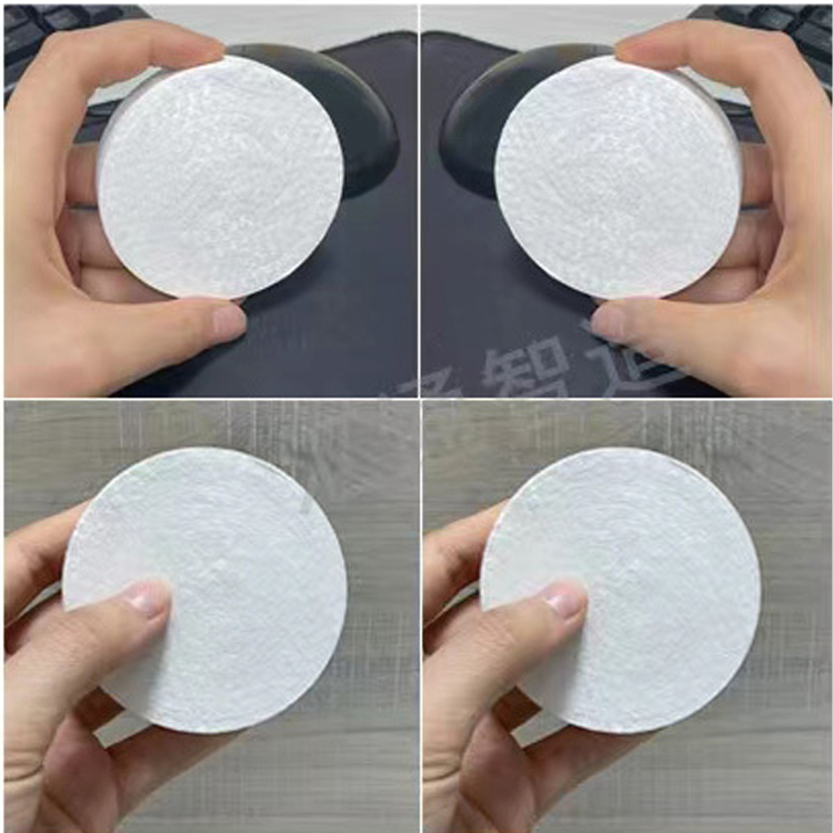 The machine automatic cloth into the mold and compression mold automatic rotation mechanism, hydraulic cylinder from raw materials to finished products a compression molding; Common specifications: φ45mm, rectangular 28*40mm, etc., and can be customized according to customer requirements of different patterns.