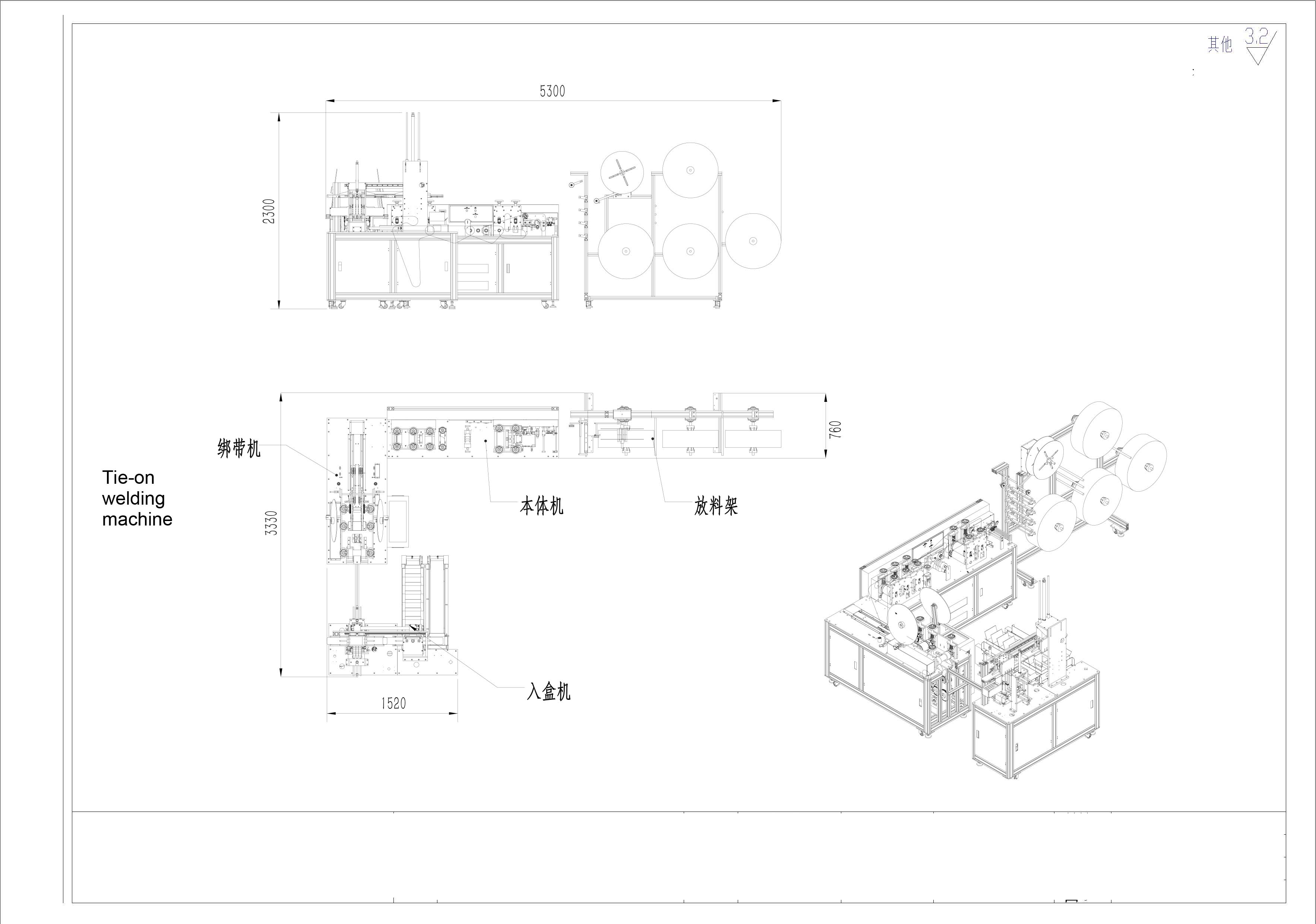 This fully automated machine for producing flat face masks with bandages consists of a main unit and an ear loop machine. From mask production to ear loop and nose wire welding, all the way to finished product boxing, all operations are automated, eliminating the need for manual operation. It's