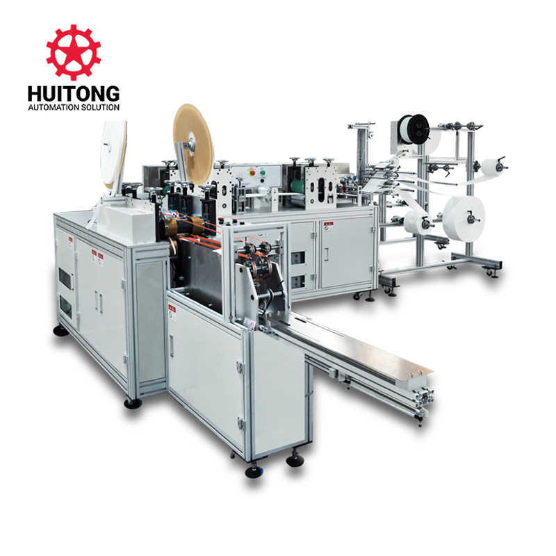 This fully automated machine for producing flat face masks with bandages consists of a main unit and an ear loop machine. From mask production to ear loop welding and nose wire welding, all the way to finished product, the entire process is automated, requiring no manual operation. It is ideal for producing flat face masks with bandages.